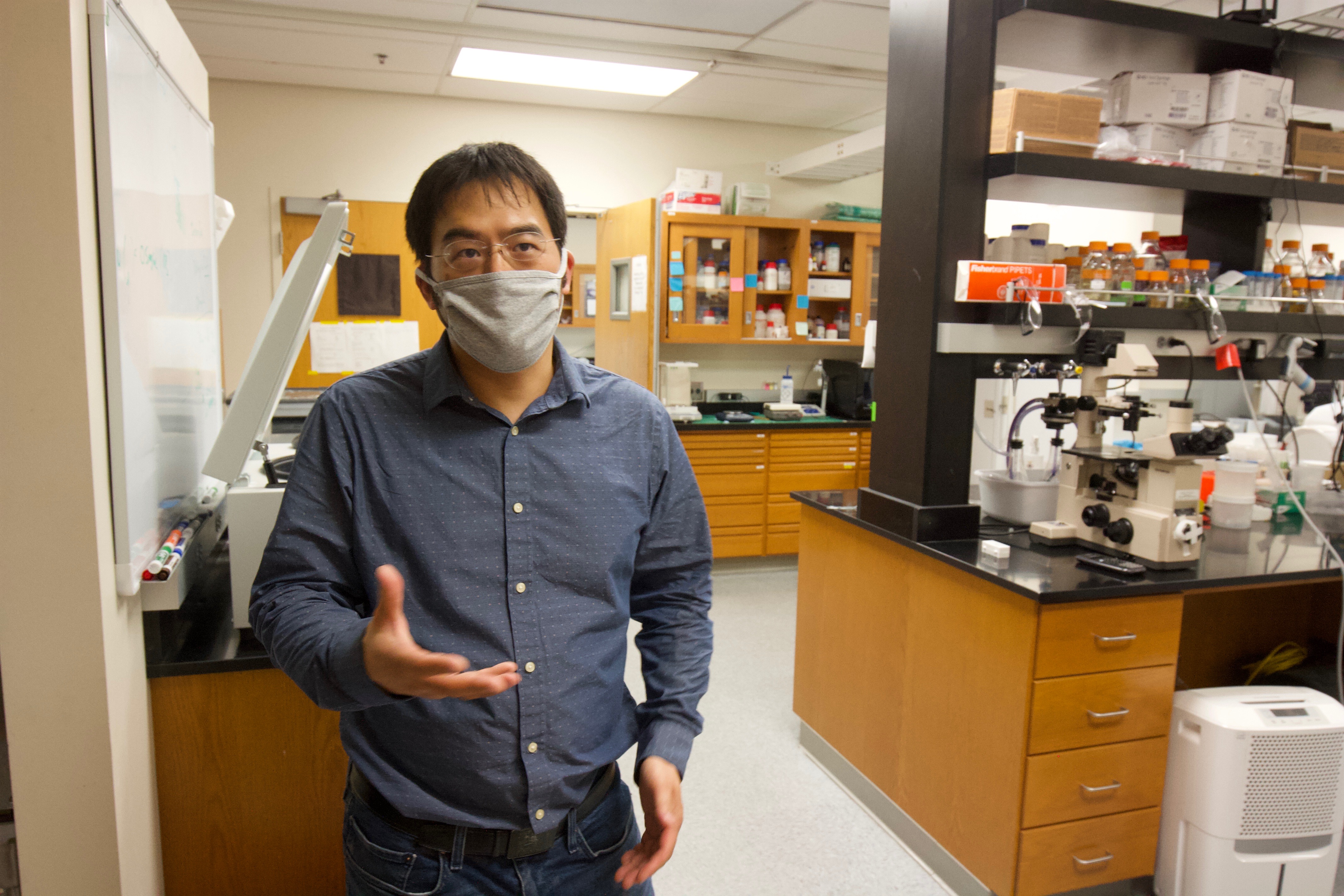Albert Siryaporn stands in his lab, face mask donned, talking about how long it might take for his lab’s research to evolve into a viable coronavirus treatment — and how teaching classes online instead of in person is affecting that. “It’s a time issue,” Siryaporn says. “Moving classes online has created a lot of labor.”