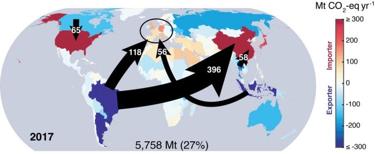 In a paper published today in Science, the researchers report that trade in land-use emissions – which come from a combination of agriculture and land-use change – increased from 5.1 gigatons of carbon dioxide equivalent (when factoring in other greenhouse gas emissions such as nitrous oxide and methane) per year in 2004 to 5.8 gigatons in 2017.