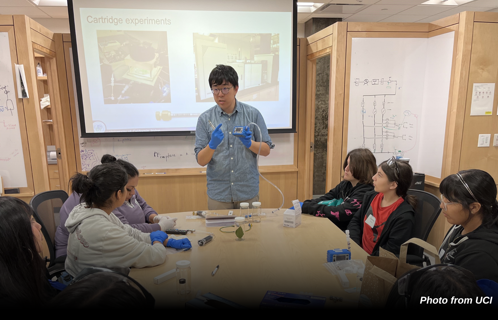 Middle-schoolers watch a demonstration unfold at the UCI School of Physical Sciences.